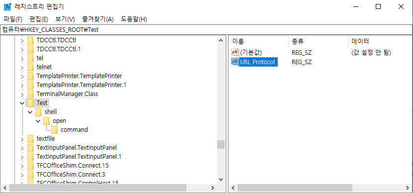 해당 값의 이름을 URL Protocol 로 바꿔줍니다.