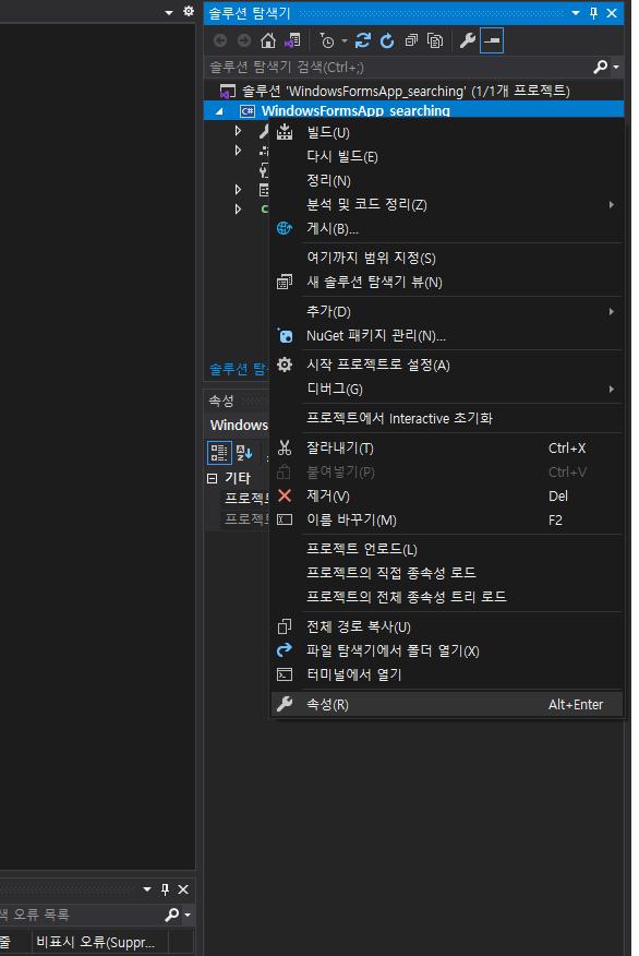 1. 프로젝트 오른쪽 클릭하고 속성을 눌러줍니다.